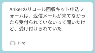 Ankerのスピーカーがリコール対象になって、回収キットを申し込んだ。ところが、全然届かない。Ankerからの返信メールが来ないと受け付けていない(という話だった)いつくるんだろう?と思って、他の人はどうなのかと思って検索してみたら「申込時...